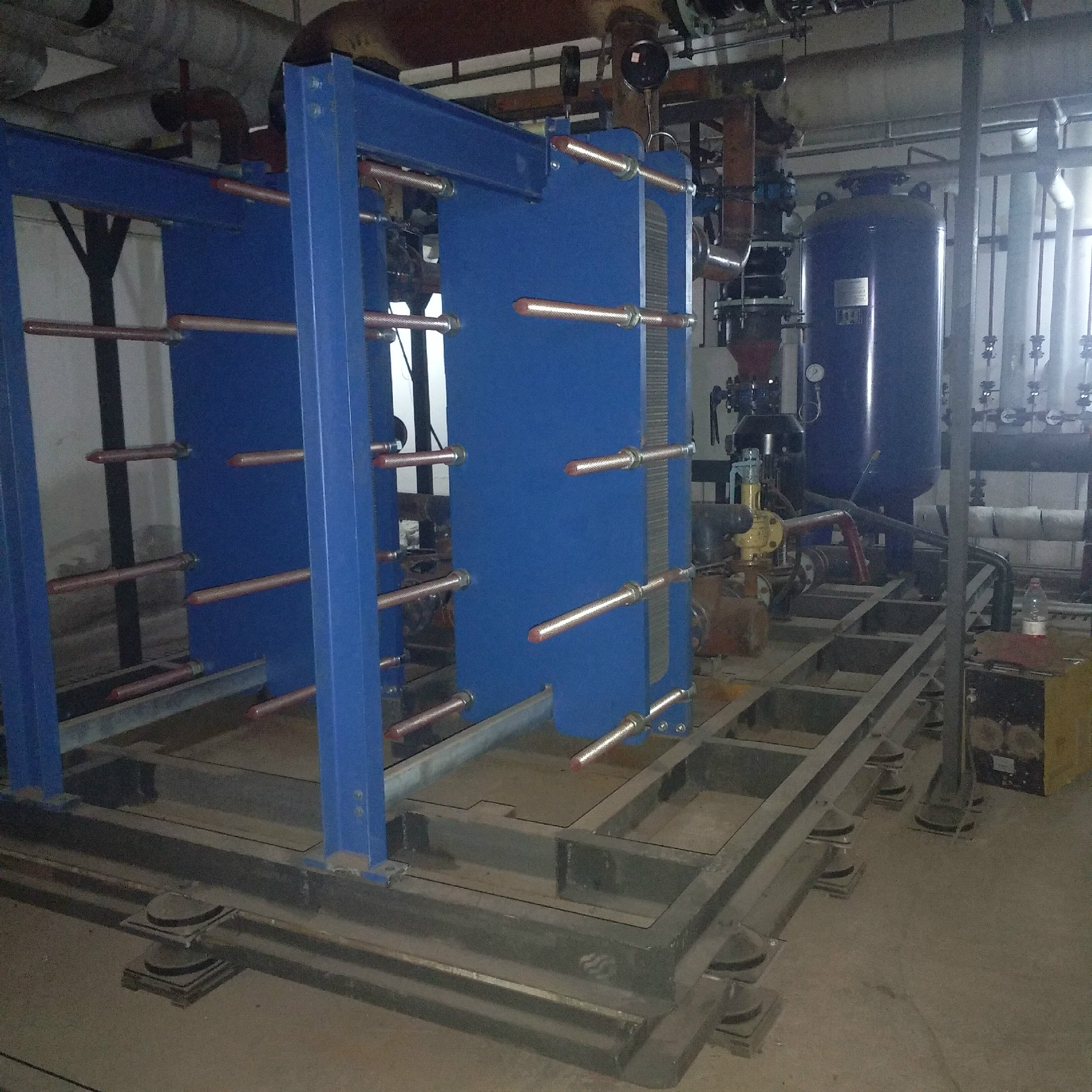 中鐵十八局集團有限公司位于天津河西區柳林街,集團住宅小區西區使用的換熱泵站位于地下一層,換熱設備運行時,嚴重影響西區30號樓一層1單元101號、102號、103號及2單元101號、102號、103號的居住環境。其噪聲高達38.6dB(A),地下一層換熱泵房共計3臺換熱機組及配套管線、水箱等設施,其中循環水泵共計18臺。經我公司技術人員實地考察,做出具體降噪方案。由2013年10月17號——2013年11月11號期間順利施工完畢,治理后取得預期設計降噪效果,綜合治理后設備正上方一層住戶夜間噪聲值達到24.6dB(A),一層住戶及中鐵十八局集團領導的好評!曾多次有周邊客戶參觀,稱為工程。